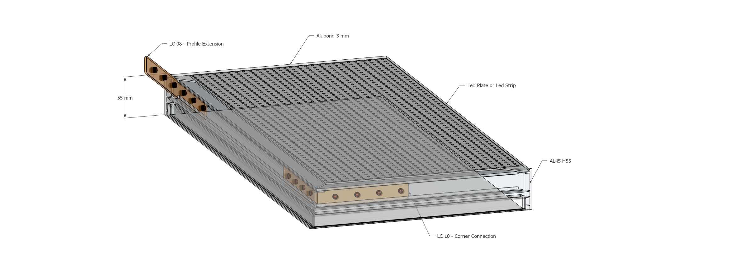 • The profile height is only 55 mm.