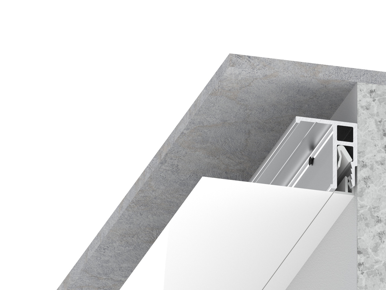 Light, invisible, universal profile. An excellent profile for creating curved (wave) and circular elements on ceilings and walls. The profile frame is aesthetically hidden behind the tensioning material.
