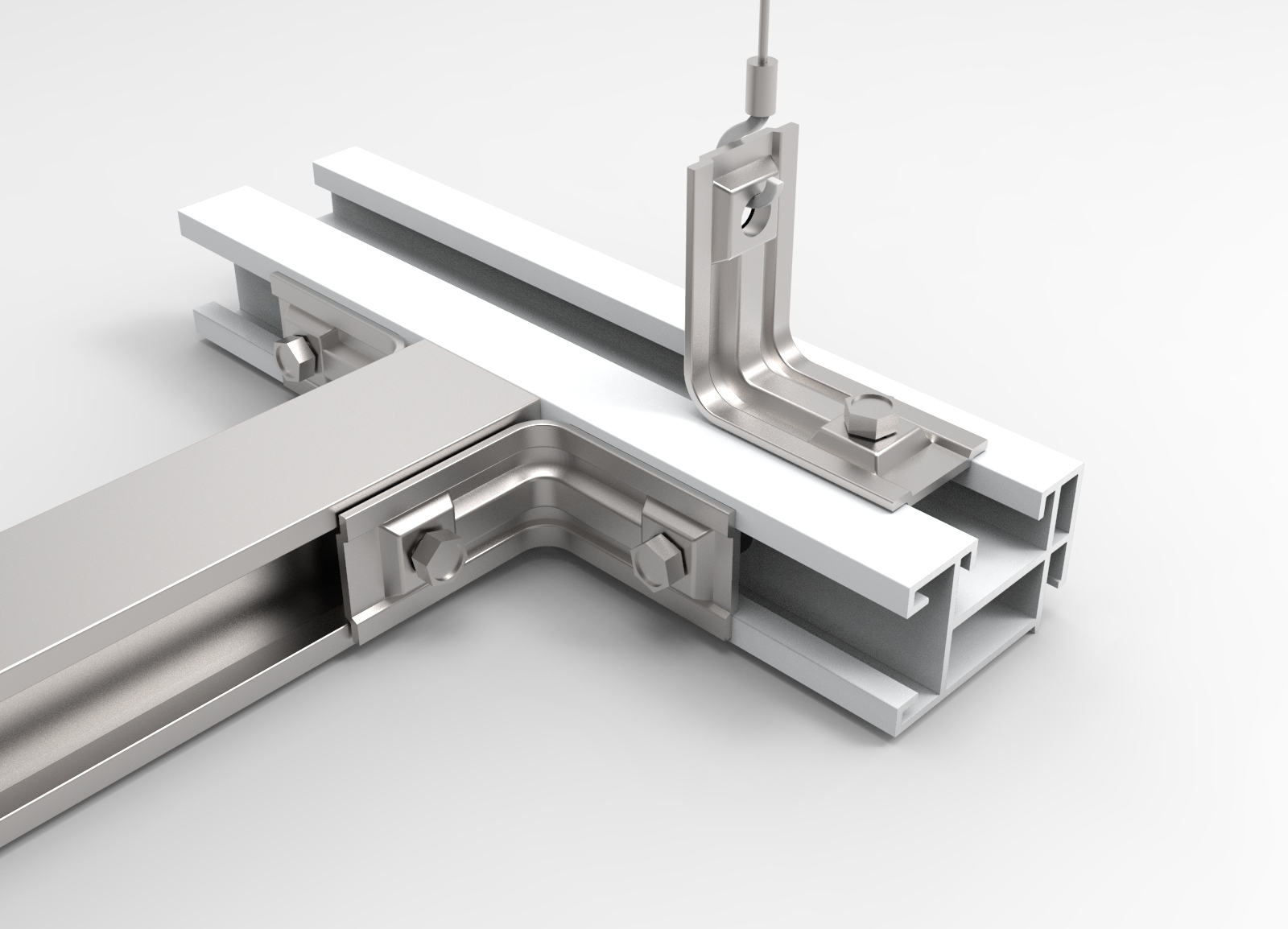 This well-thought system enables the creation of eye-catching ceiling solutions and aesthetically framed modules. The special shape of the profile facilitates the assembly of structures due to its special design and convenient fastening system – easy-fix&click MM connectors.