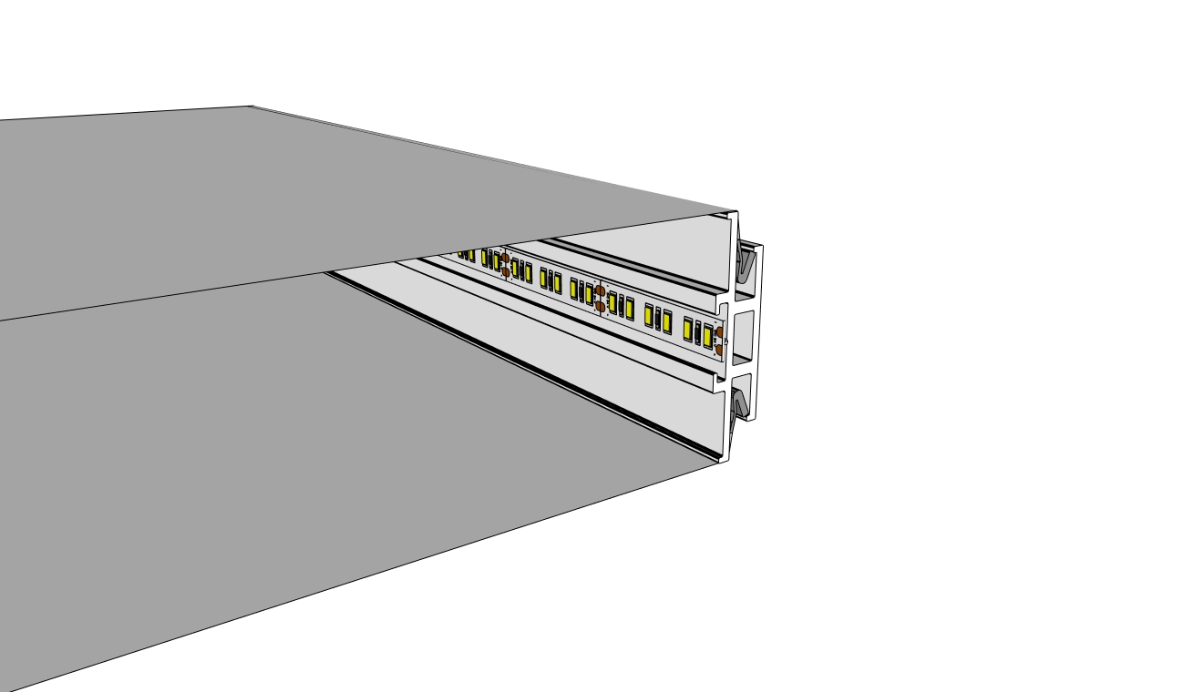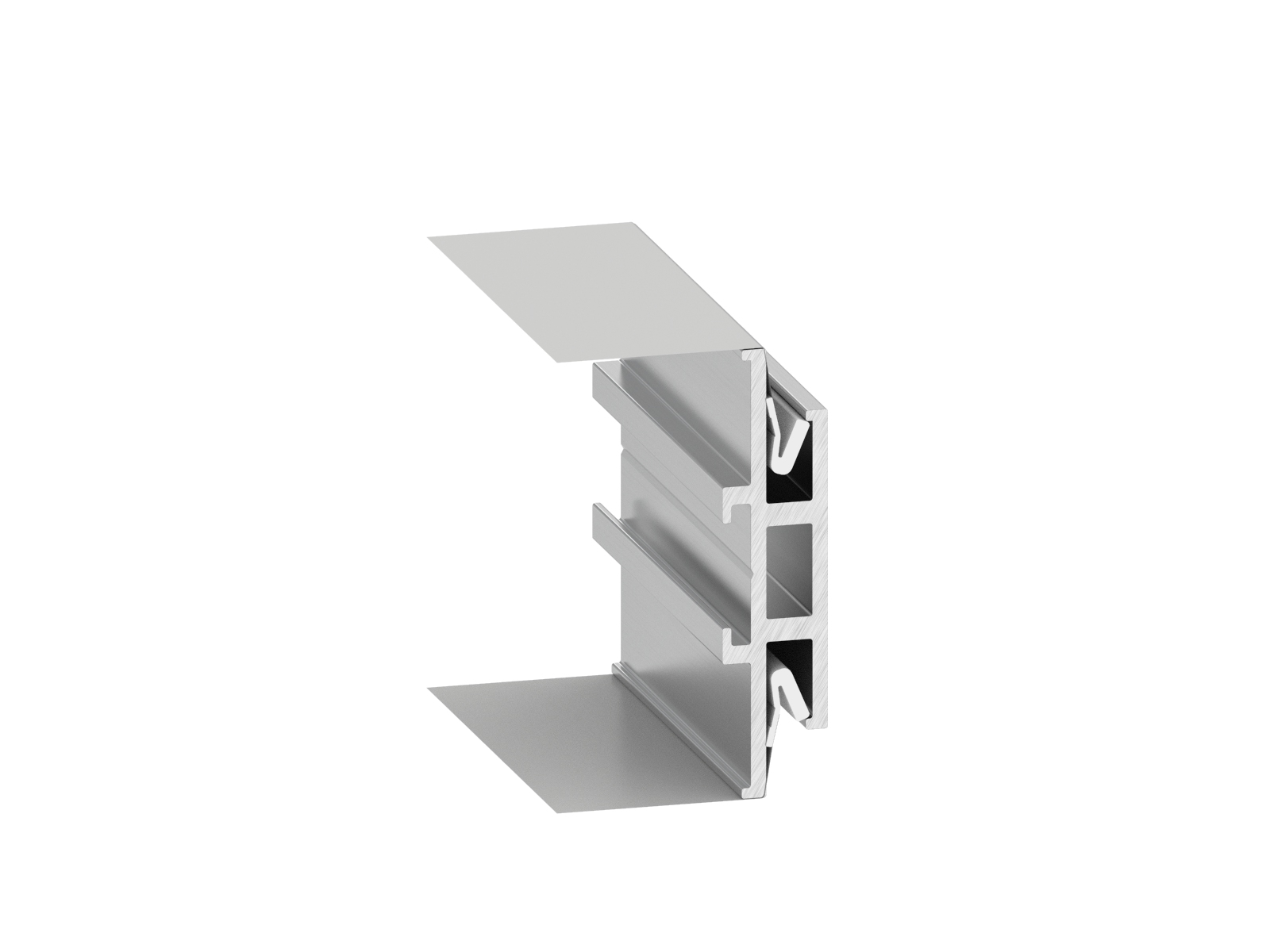 This profile has special gaps for installing stretch ceilings on both sides of the profile. So this extends the decorative possibilities of the profile, allowing the creation of unusual thin, vertically suspended luminaires.